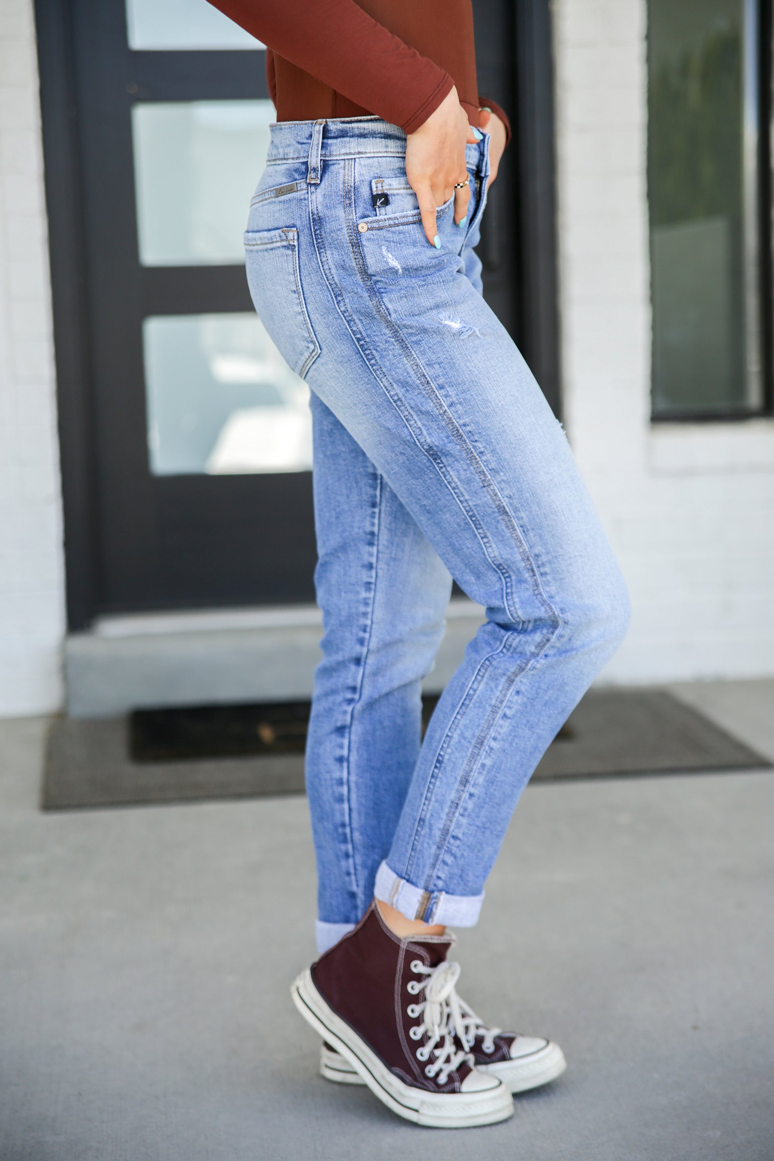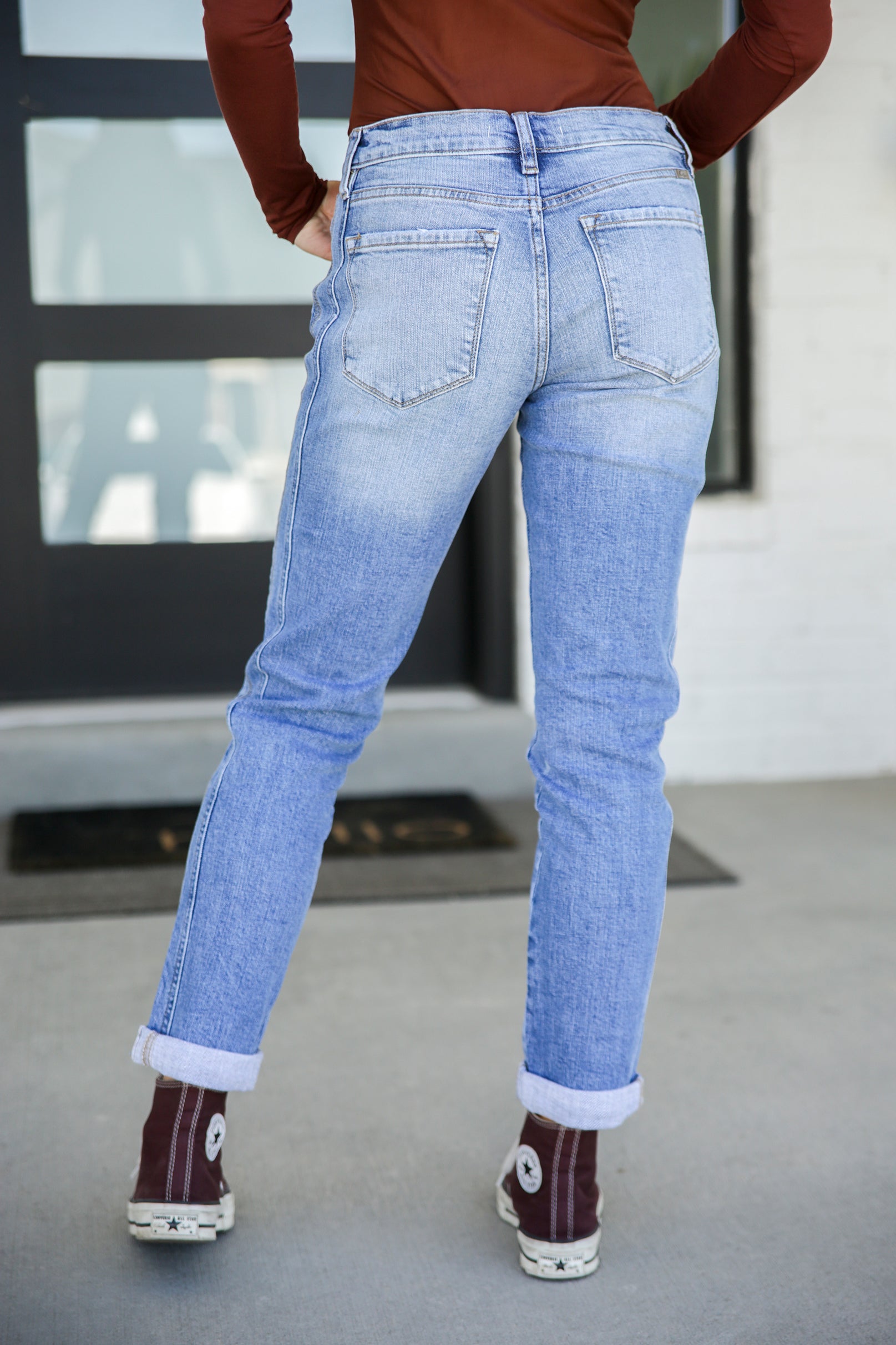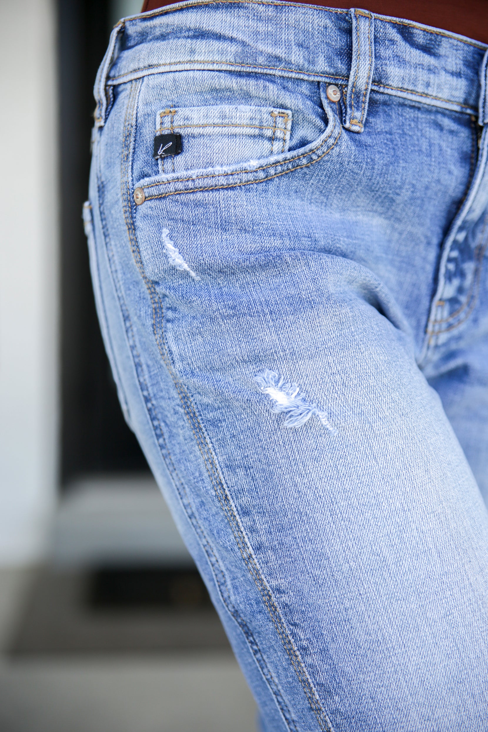 These mid-rise boyfriend jeans hit at exactly the right spot on your waist and both super comfy and on trend. The Boyfriend Kancans are a medium wash with light distressing. Pair with sneakers for the perfect, casual look.