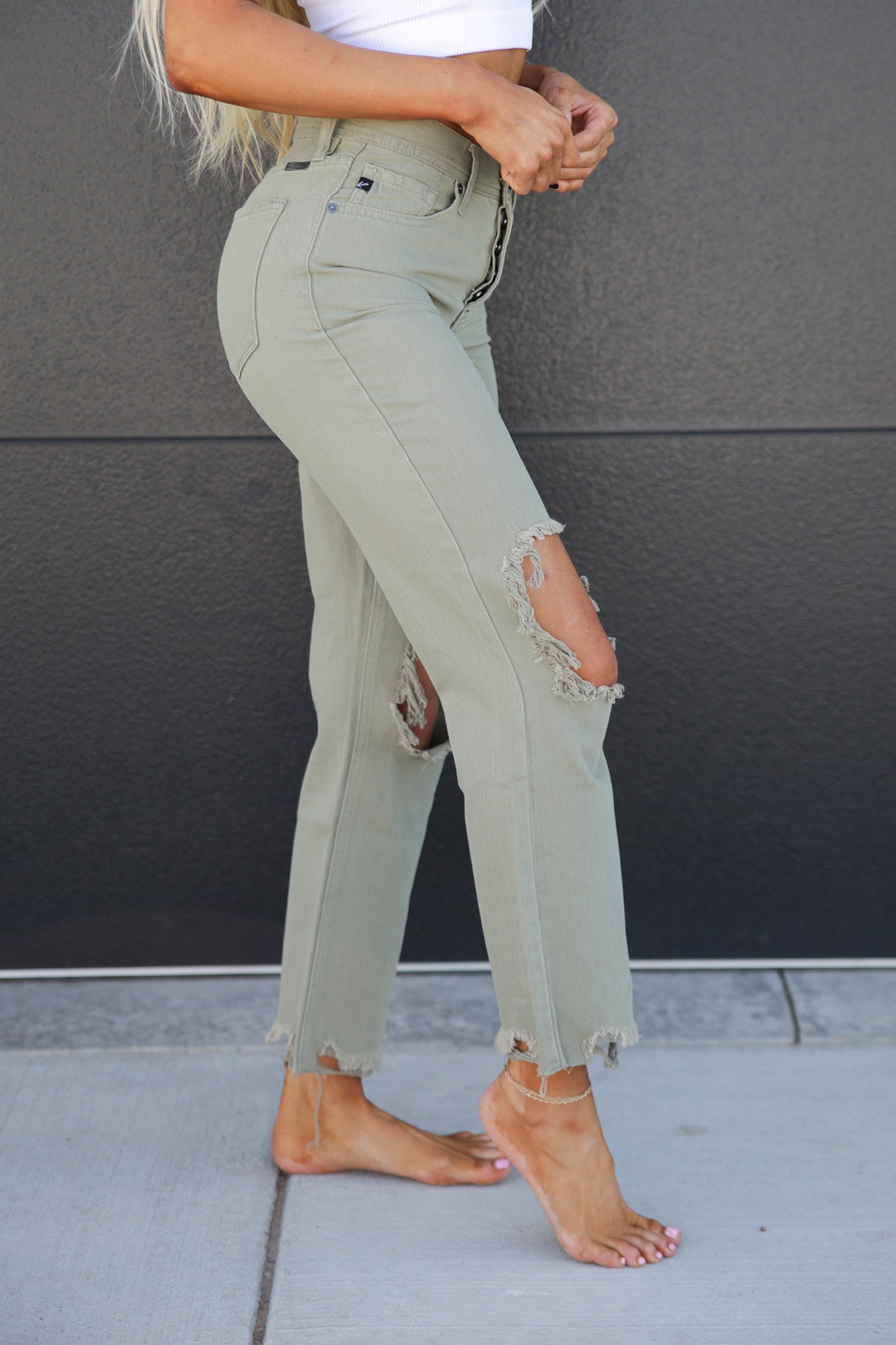 Love these! They are the perfect olive…not too light and not too dark. True to size and soft jean fabric