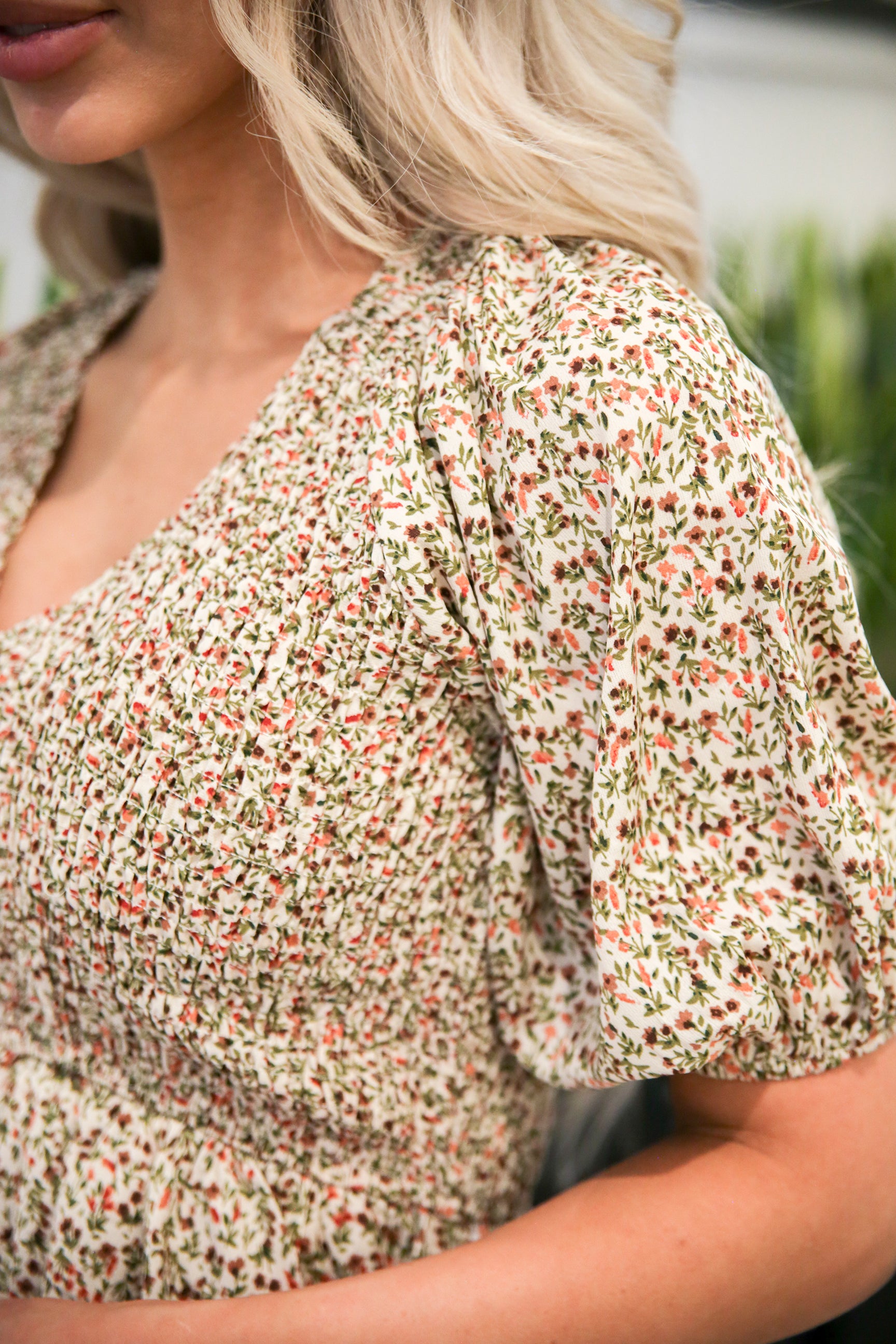 With a stretchy smocked bodice and puffed sleeves, this peplum top has the comfortable fit, dimension and detail you're looking for. Style this Floral Print Puff Sleeve Smocked Top with jeans or cut offs.