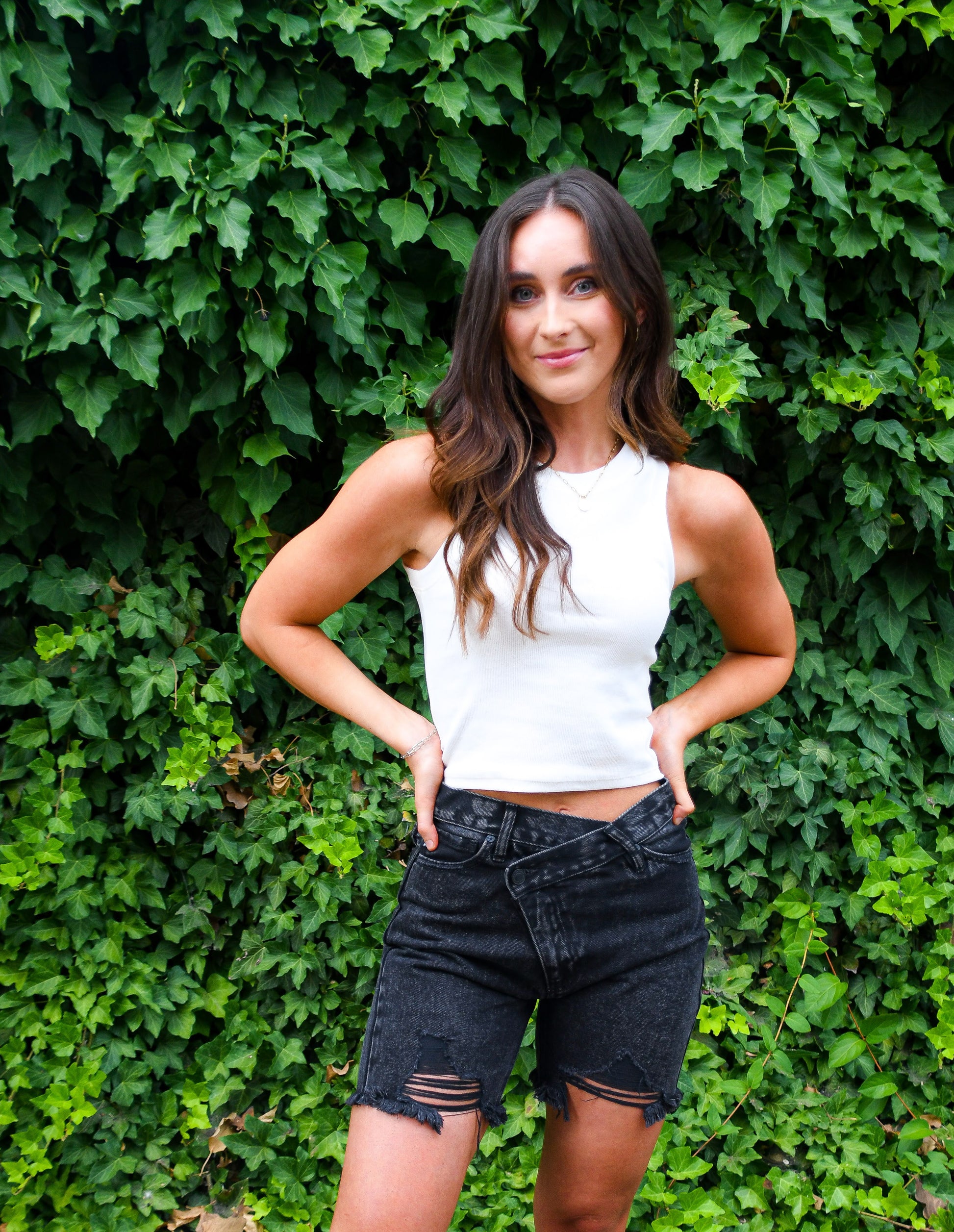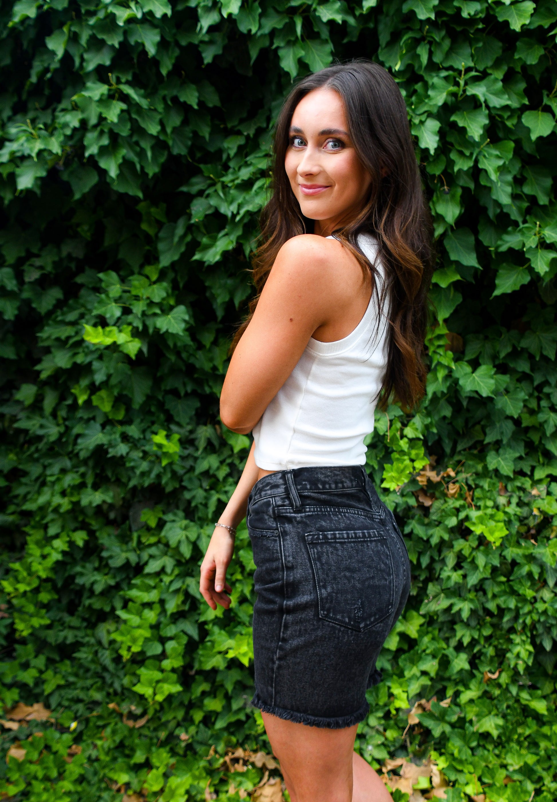 The shorts of the summer have arrived! The Kancan Cross Over Bermuda feature a classic black stone wash, relaxed boyfriend style fit, frayed hem and the cutest cross over button detail. Pair with your favorite t-shirt or long sleeve for a summer nights look.
