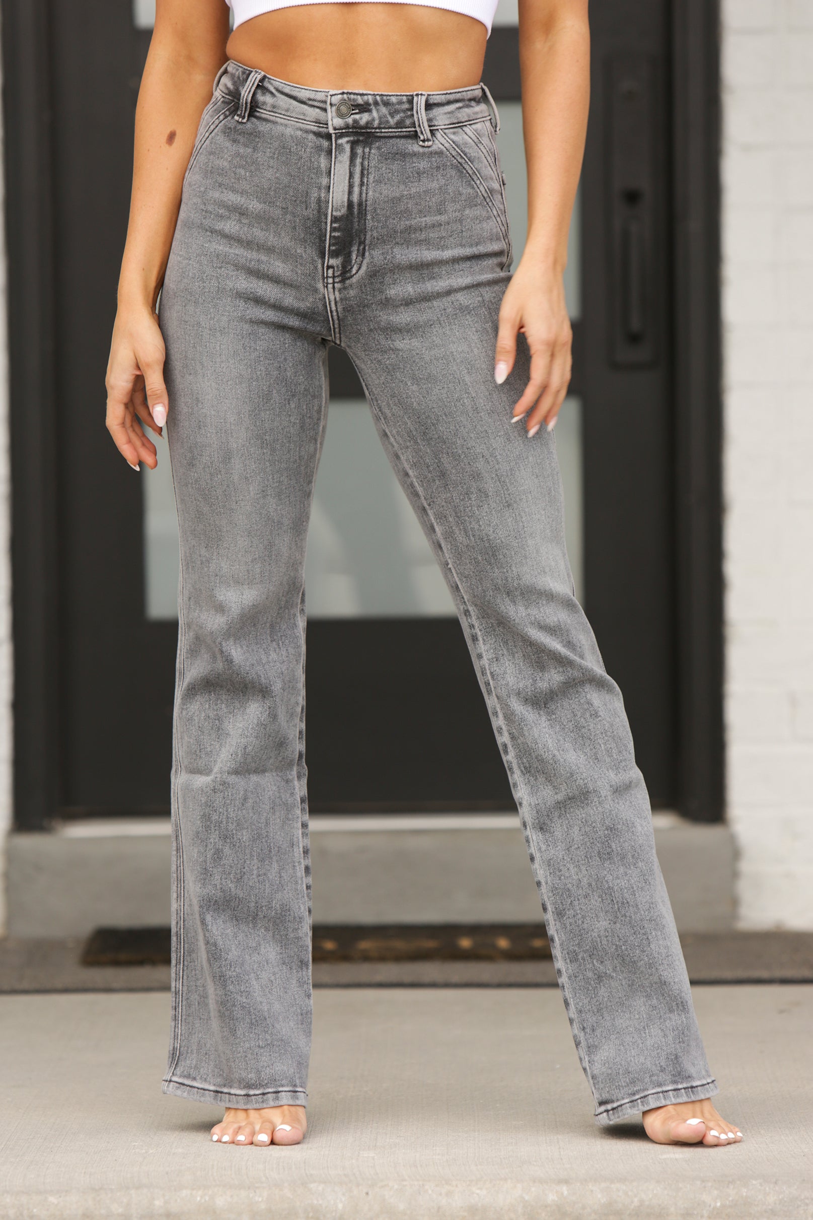 Our Kancan Ultra High Rise Slim Flare Jeans are on trend with the high rise that sits above the hip at the waistline, slightly fitted through the hip and thigh. Featuring a wider (flare) leg opening.