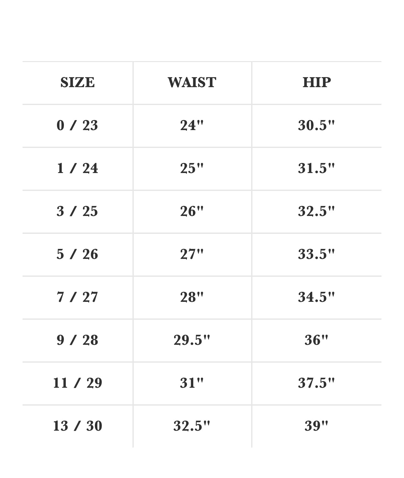 - Models are 5’3” to 5'7" wearing a size 0/23