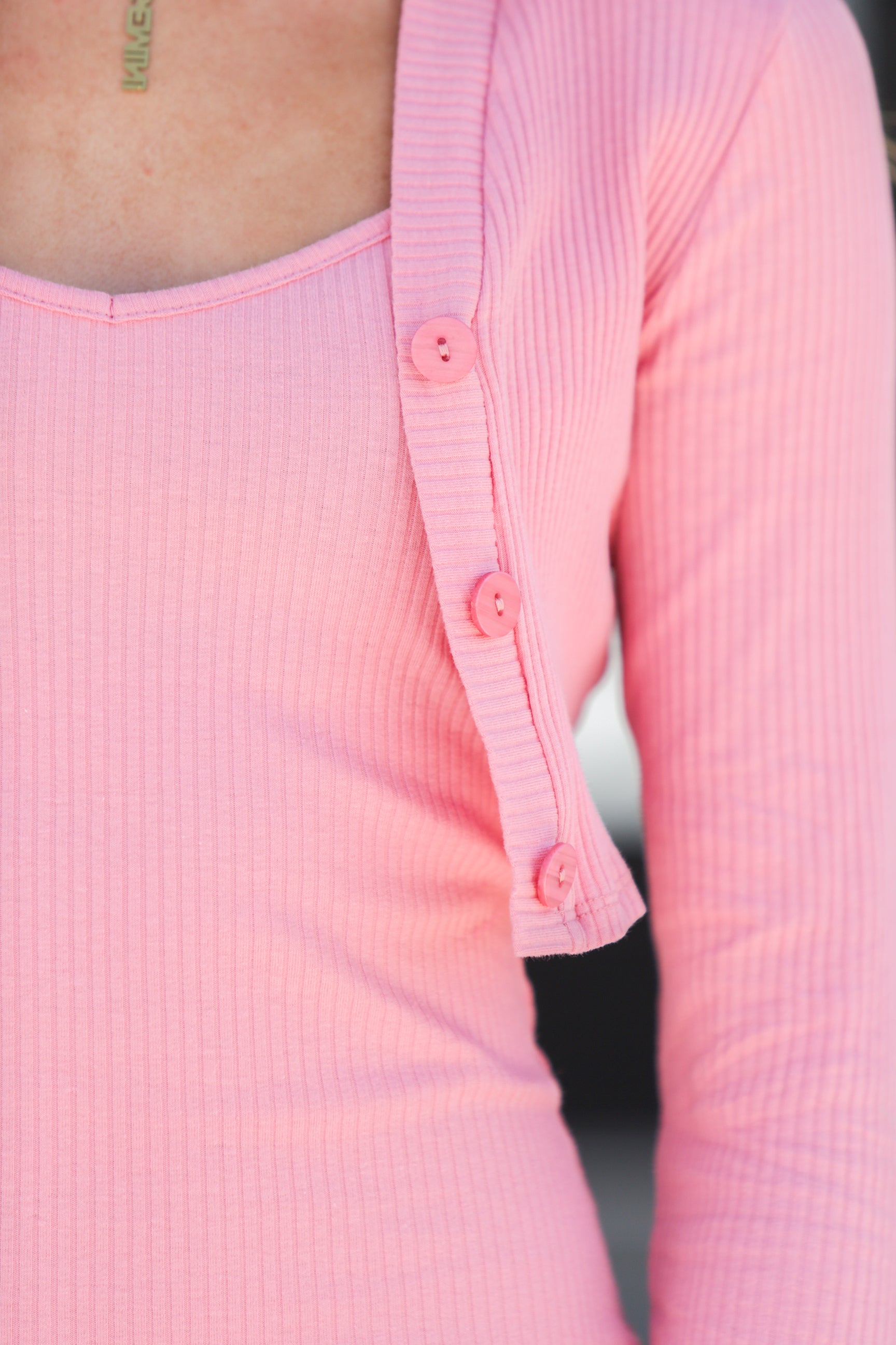 Cute and contemporary, this Ribbed Cardigan and Dress Set is just what you've been looking for. This long, fitted dress comes in 2 colors with a matching, cropped cardigan.