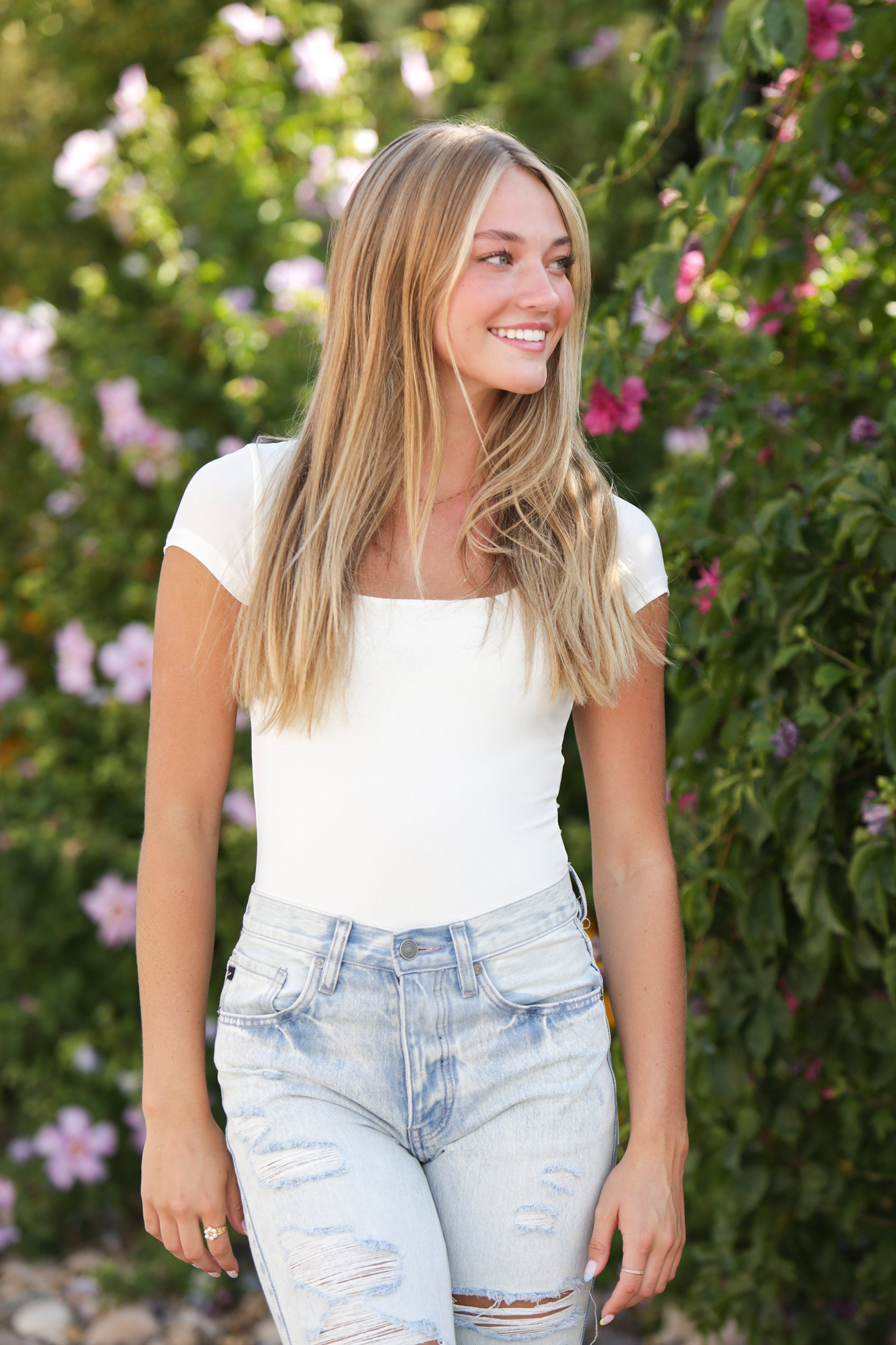 You're going to want one in every color. Our Square Neck Short Sleeve Bodysuit features short sleeves, a fitted silhouette, and square-cut neckline. Pair with high waisted jeans for a perfect look.