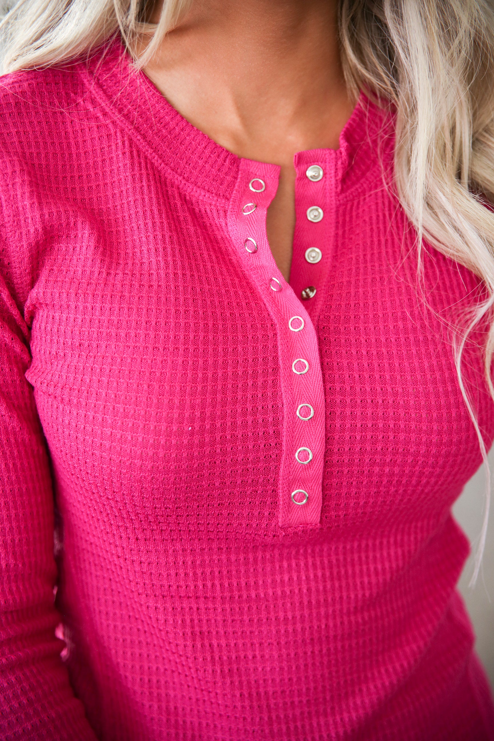 Comfy and versatile, the Whitley Waffle Henley Top is a go-to for lazy day lounging or casual wear for going out. The long sleeve henley is fitted yet loose enough for comfort.